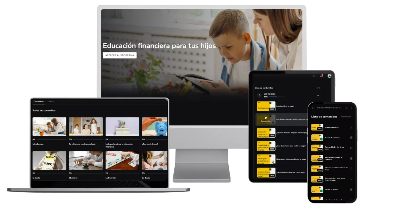 El programa está diseñado para acompañar a tu hijo/a durante años, ya que las actividades pueden repetirse y adaptarse a medida que crece, reforzando los hábitos financieros de forma constante. ¡Cada etapa será una nueva oportunidad para aprender juntos!
